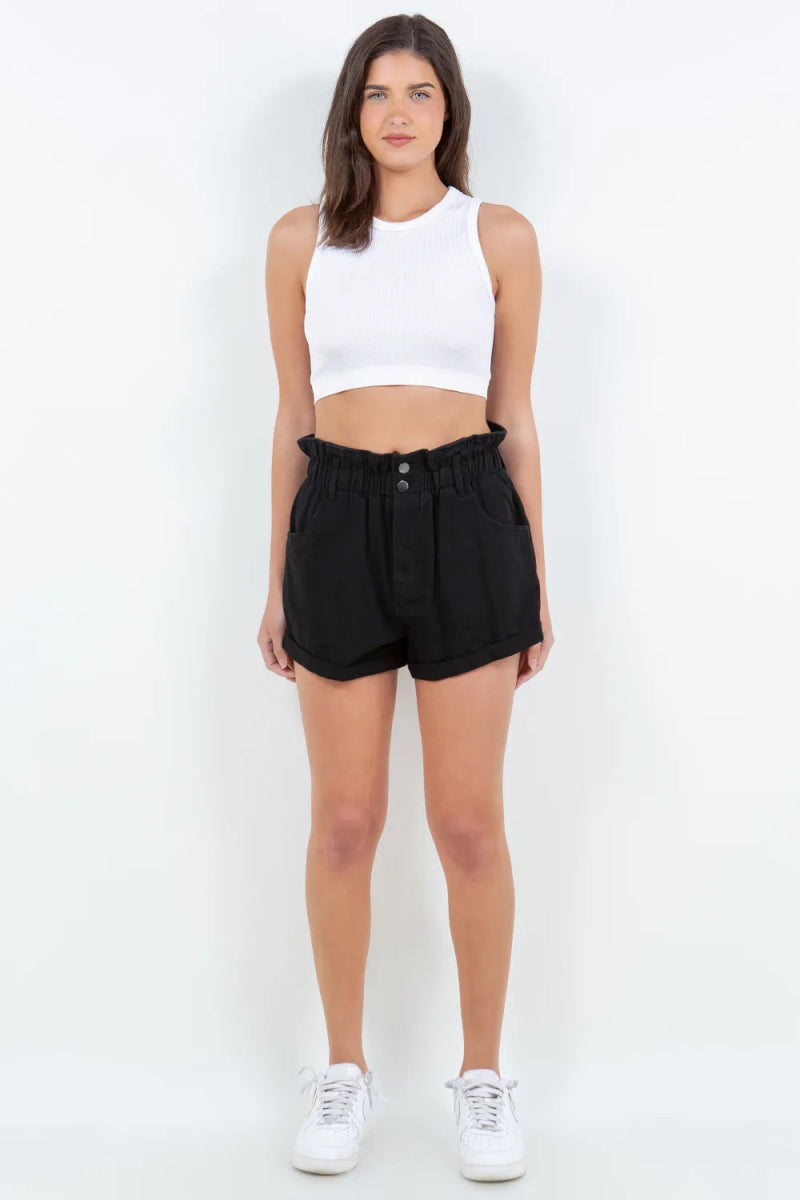 Elevate your summer wardrobe with these stylish High-Waist Paper Bag Shorts. The paper bag waist cinches at the midsection, creating a flattering silhouette, while the high-rise design elongates the legs for a chic, modern look. Crafted from lightweight, breathable fabric, these shorts ensure all-day comfort in warm weather. Perfect for a variety of occasions, they can be dressed up with a blouse and heels for a polished outfit or paired with a crop top and sandals for a casual, trendy vibe. The versatile design allows effortless styling, making these shorts a wardrobe essential for fashion-forward individuals. Combining sophistication, comfort, and on-trend detailing, the High-Waist Paper Bag Shorts are a must-have piece to enhance your summer ensembles and create countless stylish looks.