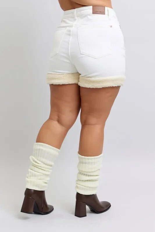 Elevate your summer wardrobe with these high waist denim shorts featuring soft shearling cuffs for a cozy, stylish twist. The flattering high-rise fit enhances your silhouette, while the unique cuff detailing adds a playful, fashion-forward touch. Perfect for creating versatile looks, these shorts can be paired with casual tees for everyday comfort or dressed up with a chic blouse for a trendy, eye-catching outfit. Ideal for plus sizes, they combine comfort, style, and effortless summer appeal.