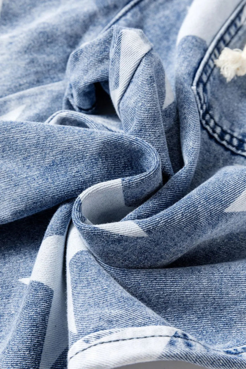 Star Print Washed Drawstring High Waist Wide Leg Jeans